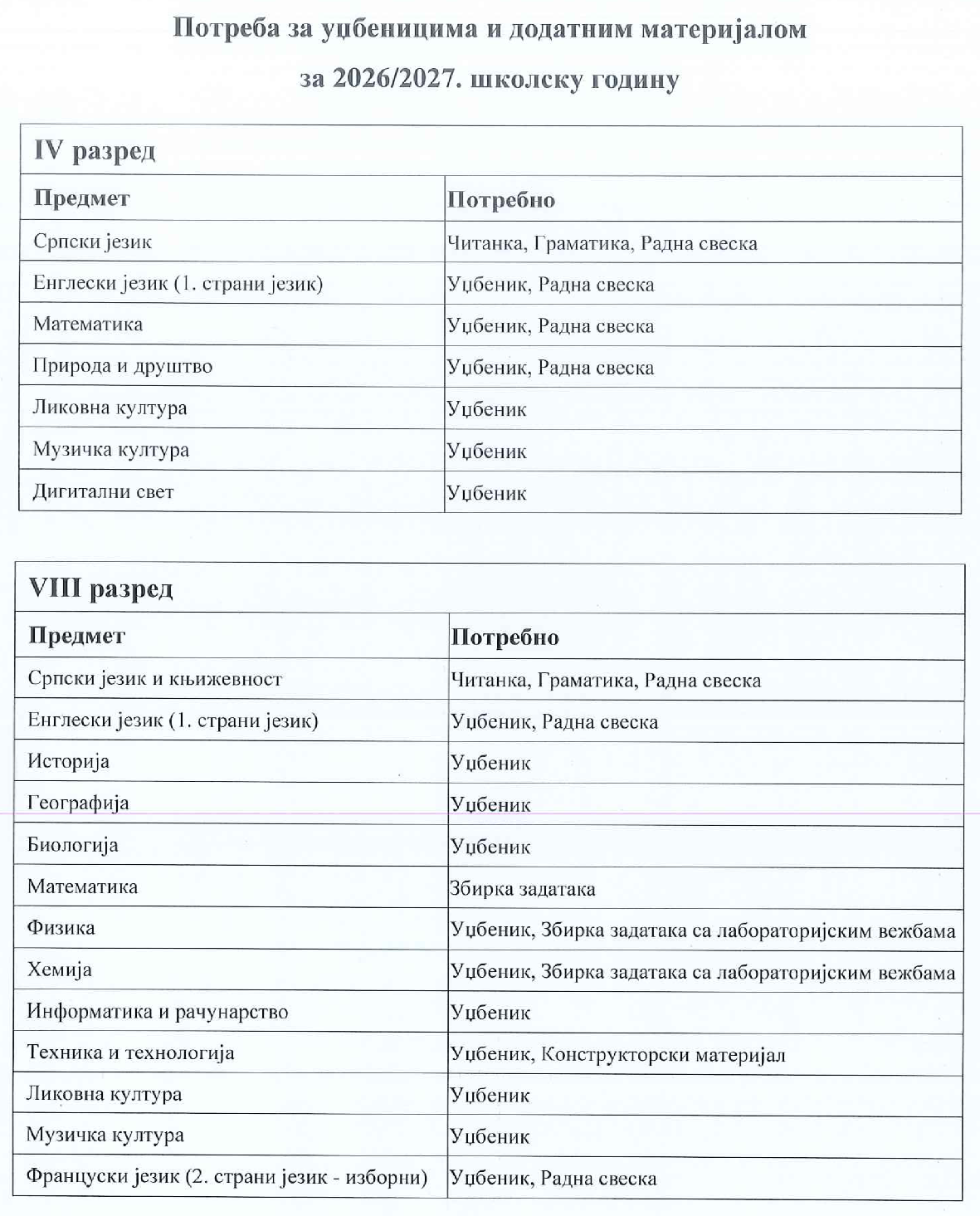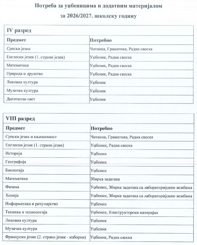 ИЗБОР УЏБЕНИКА ЗА 4. И 8. РАЗРЕД